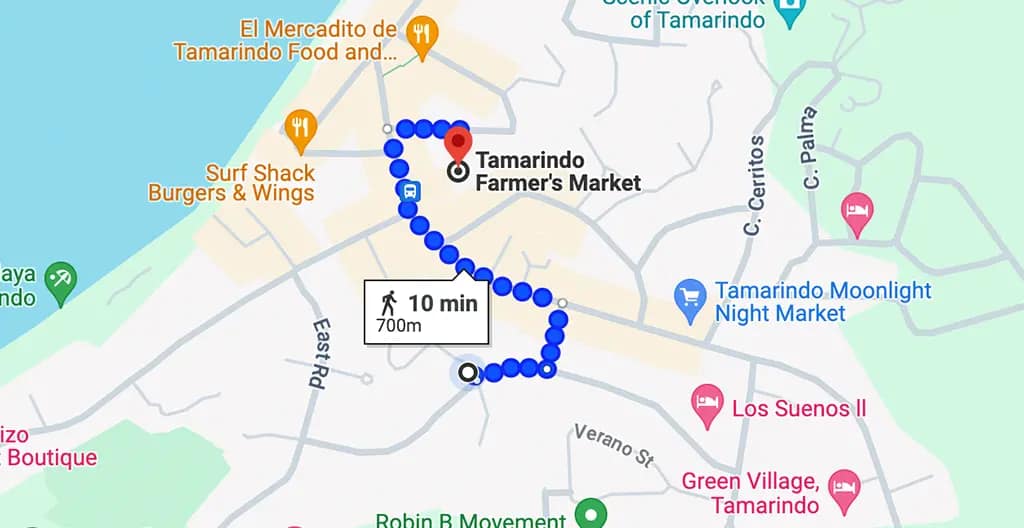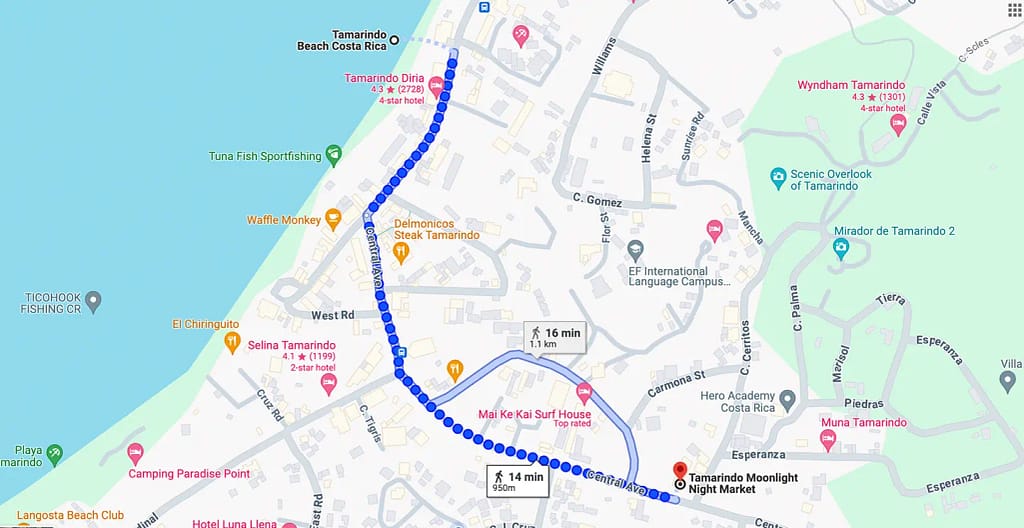 The map showcases how centrally located the night market is, making it convenient for anyone looking to immerse themselves in this lively cultural experience. It’s an essential resource for navigating Tamarindo and ensuring that you don’t miss out on all the excitement at this popular evening attraction.